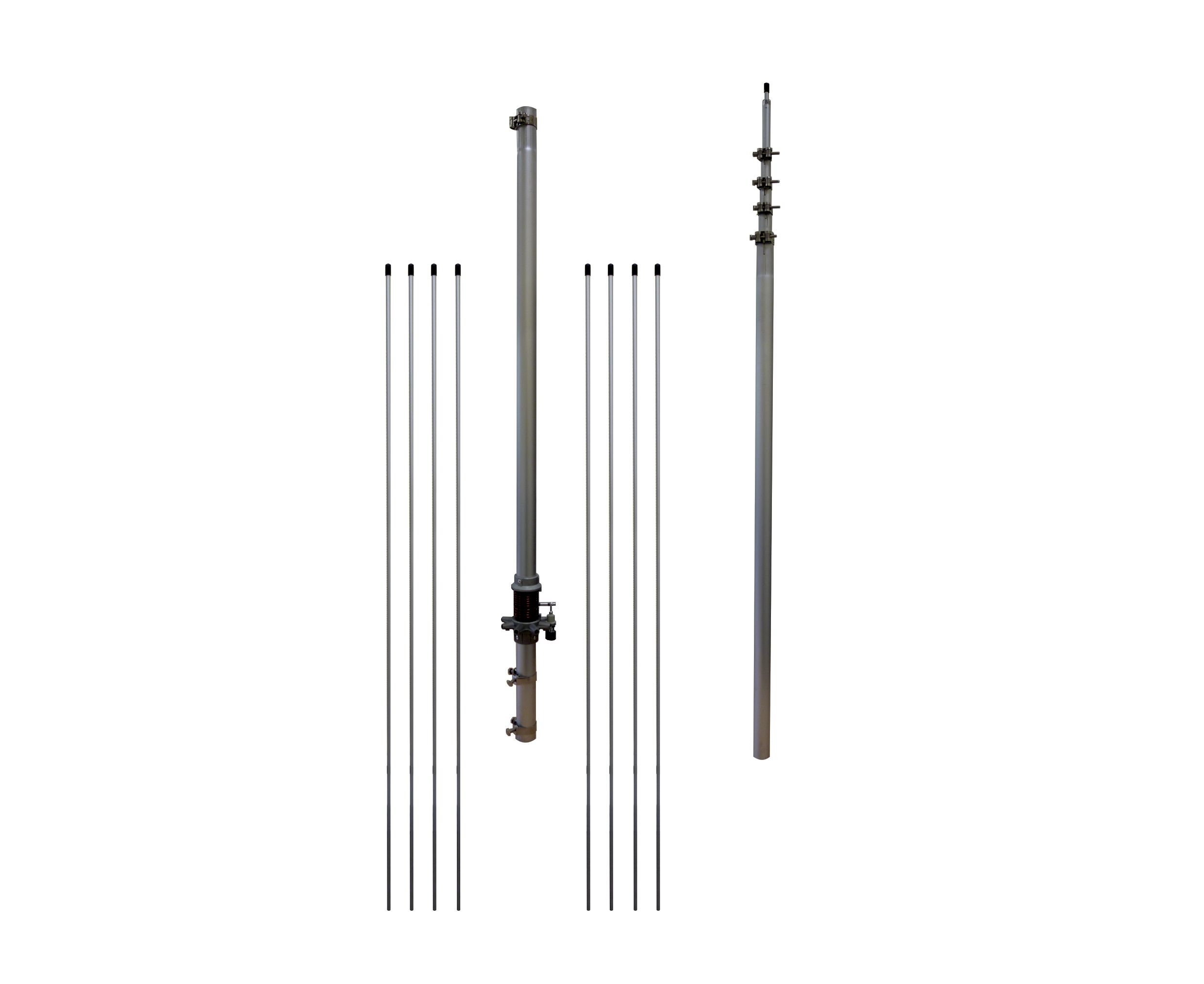 Антенна имеет 8 противовесов, обеспечивающих равномерную круговую диаграмму направленности в горизонтальной плоскости и прижатый к горизонту основной лепесток диаграммы, в вертикальной плоскости излучения. При установке на заземлённую мачту и благодаря специальной схеме согласования антенны, обеспечивается низкий КСВ, надёжная защита от статического электричества, а также надёжное заземление по постоянному току центральной жилы кабеля. Антенна комплектуется червячными хомутами, для фиксации частей полотна антенны.