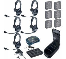 Комплект Eartec HUB 5-S на 5 абонентов с гарнитурами 5 Single Headsets. Батареи, зарядное устройство и сумка в комплекте
