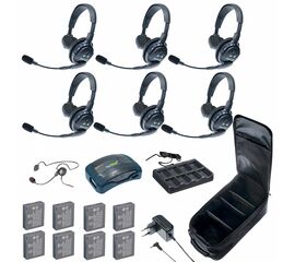 Комплект Eartec HUB 7-SCYB на 7 абонентов с гарнитурами 6 Single 1 Cyber Headset. Батареи, зарядное устройство и сумка в комплекте