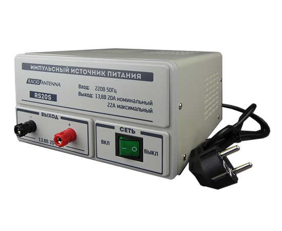 Импульсный источник питания Racio Antenna RS20S обладает высокой эффективностью, надежностью, компактным размером и небольшим весом. Конструкция RS20S обеспечивает низкий уровень пульсаций (Low Noice) и идеально соответствует потребностям современного оборудования связи. RS20S предназначен для питания радиостанций, а также различного радиооборудования с напряжением питания 13,8 В.