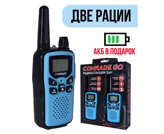 Комплект раций 2 шт Comrade Go 1 Blue. Рация синего цвета. Рация детская Comrade Go 1.