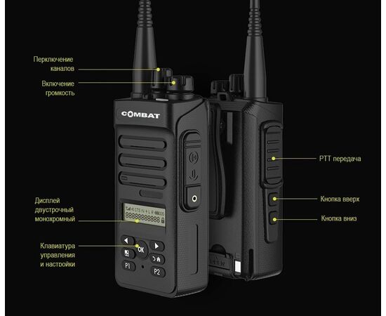 - Рация COMBAT T-34 PATROL существует в двух вариантах - с дисплеем и без дисплея
