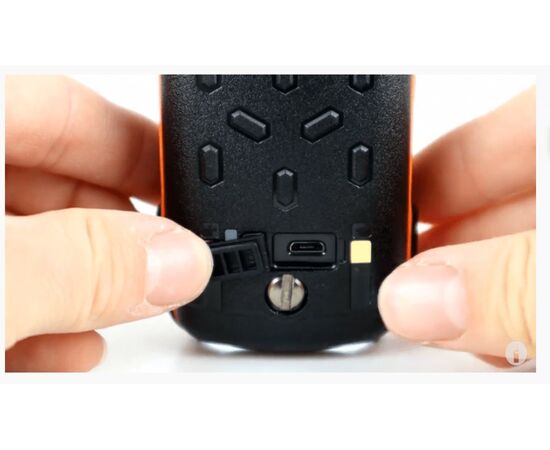Разъем зарядки аккумулятора рации КОМБАТ Т-34 Спорт практически герметично закрывается большой резиновой крышкой и может питаться от любого 5В источника 700-800 мА. Во время зарядки индикатор слева от разъема горит красным, после зарядки горит зеленым.